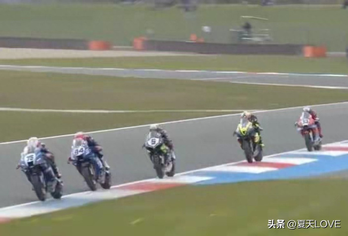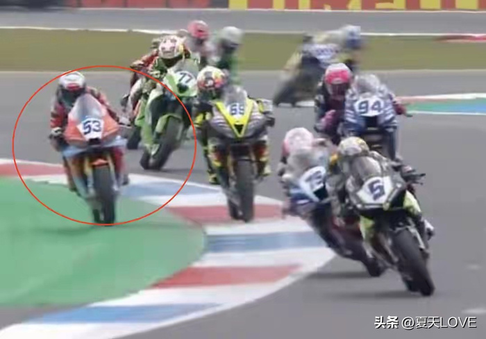 最后一圈,德比斯被压在第5,前面4台杜卡迪、雅马哈全在疯冲,正常走线根本超不过去。